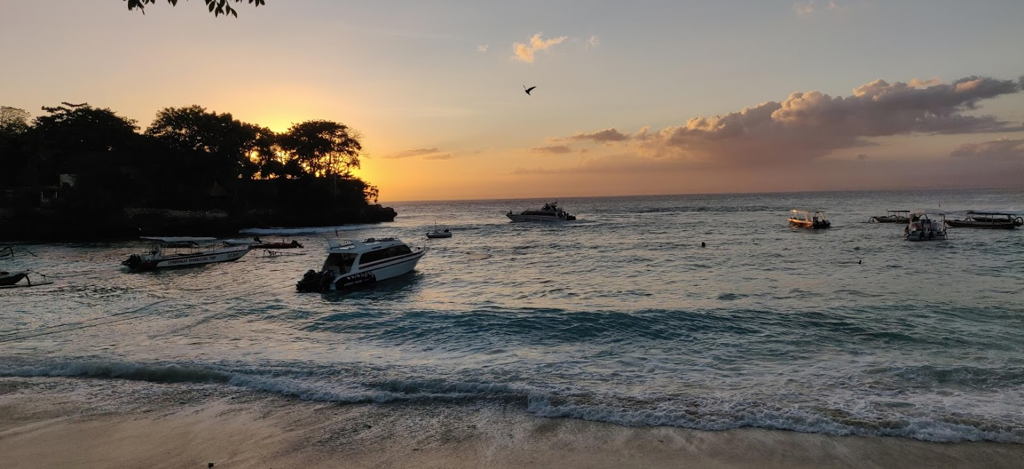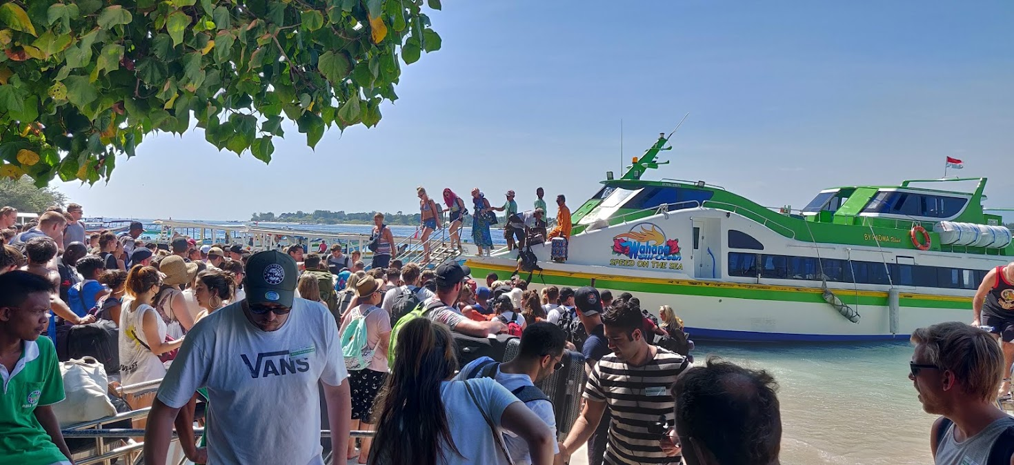 Afhankelijk van je aankomsttijd op Denpasar (Bali) kun je een nachtje in Sanur verblijven of direct vanuit Sanur naar de eilanden varen. De boottocht duurt ongeveer 30 minuten. Hoewel de boot wat op en neer klapte, viel de reis ons mee. We hebben echter van anderen gehoord dat de overtocht, vooral bij harde wind, als heftig kan worden ervaren. Het is daarom verstandig om de weersvoorspellingen in de gaten te houden.