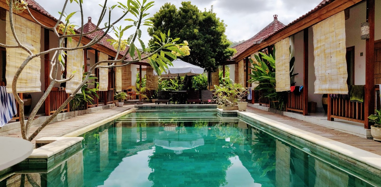 Dewangga is zeer centraal gelegen, maar voelt toch rustig aan door de prachtige tuin. De bungalows zijn mooi en comfortabel, ideaal om na een dag vol activiteiten tot rust te komen.
